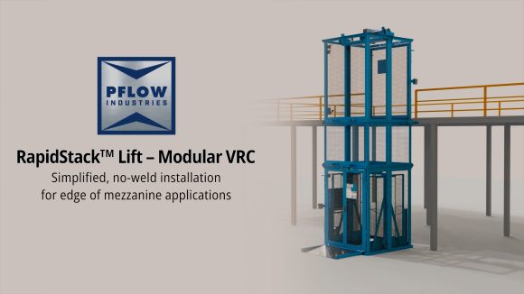 Featured at the show will be PFlow’s new RapidStack™ Lift Modular VRC, designed to streamline installation and shorten project timelines without compromising performance. The system combines two pre-built sections (bottom and top) with a made-to-order middle section—the only component requiring custom fabrication—to enable site-specific vertical travel. This modular approach reduces fabrication time, accelerates delivery, and reduces field labor. The bolt-together design eliminates on-site welding and associated hot-work permits, while integrated quick-connect electrical components and adjustable, no-weld bracing enable faster installation and start-up. Rated for up to 2,500 pounds, with a standard 2-level, edge-of-mezzanine configuration, RapidStack™ delivers the structural integrity PFlow is known for.