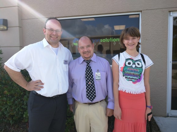 Photo: Polygon Solutions Product Engineer Peter Bagwell, Lee Virtual School Principal Al Shilling, and student Abby Slentz at the 2015 Manufacturing Day Event hosted by Polygon Solutions.