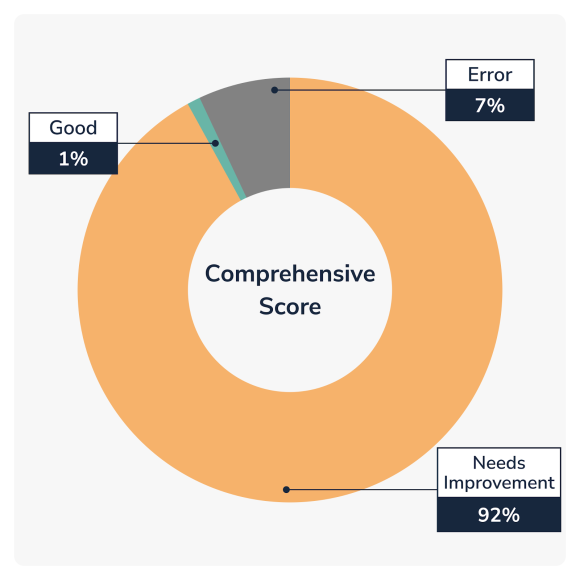 In this study, 67% of the websites scored between 50-89 for accessibility, putting them in the “Needs Improvement” category. At the low end, one site scored 43 and 11 scored in the 50s.