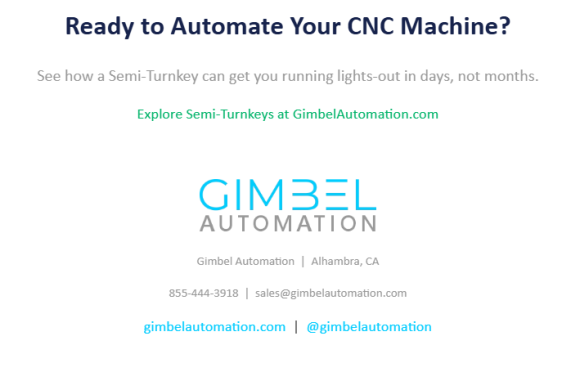 To learn more about CNC turnkey solutions and in-machine automation, visit GimbelAutomation.com or explore Semi-Turnkeys here.